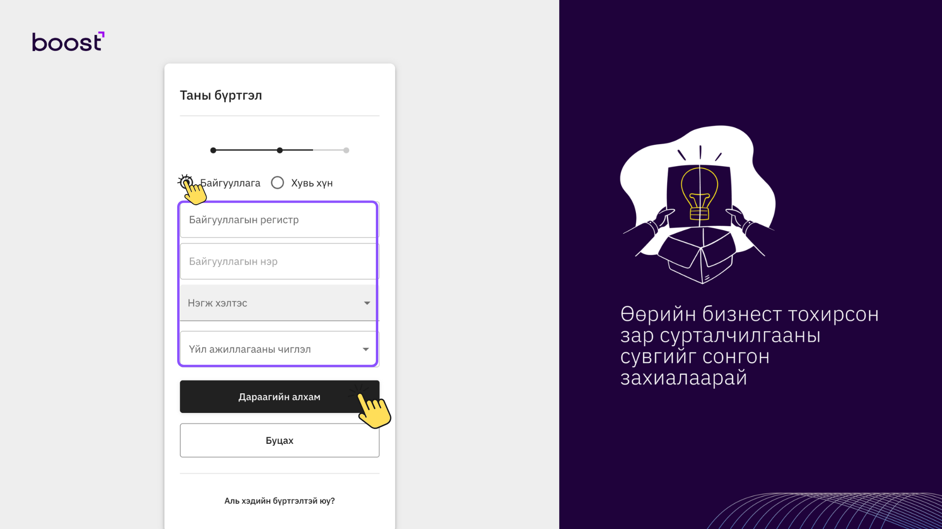Хэрхэн boost.mn-д байгууллагаа бүртгүүлэх вэ?